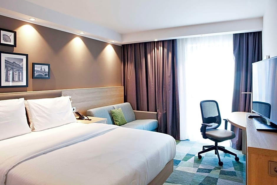 Contemporary-style room offering free WiFi, a work area, laptop safe, flat-screen TV, tea/coffee facilities and a bathroom with walk-in shower.